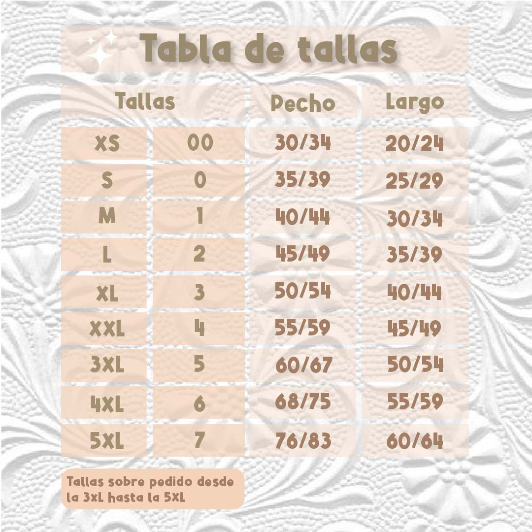 - TODAS LAS TALLAS. Manejamos todas las tallas, también podemos fabricar tallas especiales para que todas tus mascotas luzcan fabulosas.
